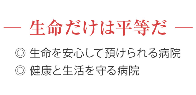 「いつでも、どこでも、だれもが安心して最善の医療を受けられる社会」をめざします。