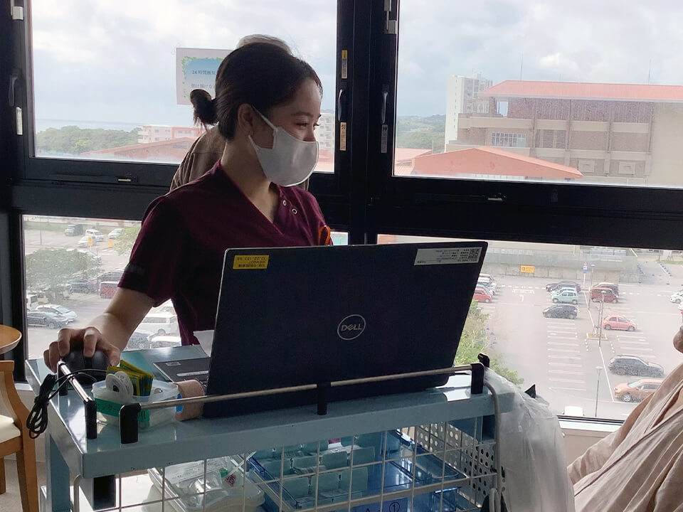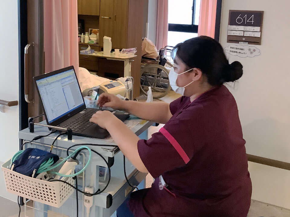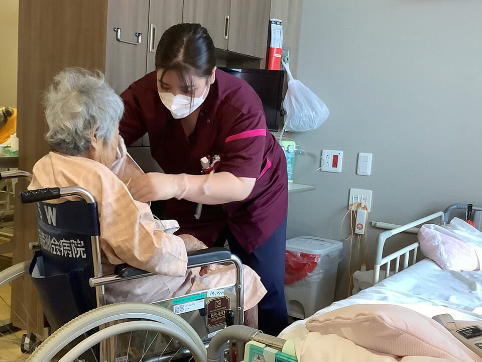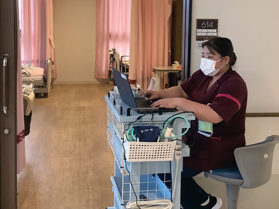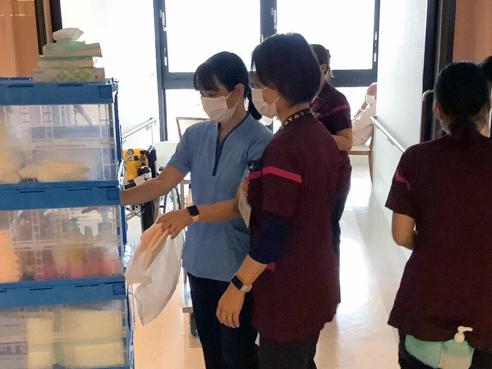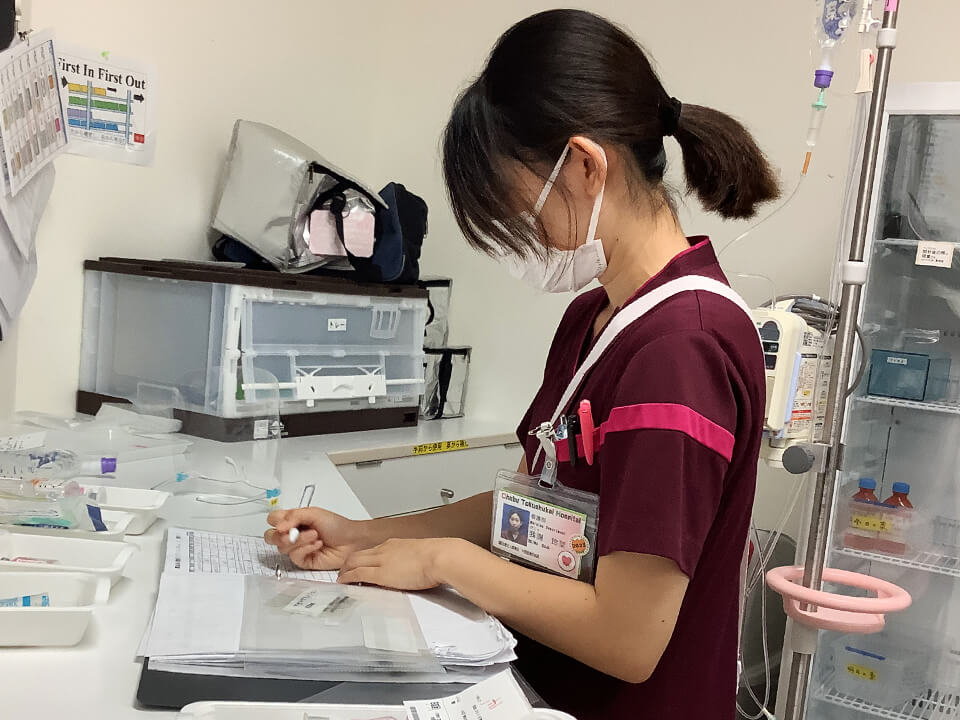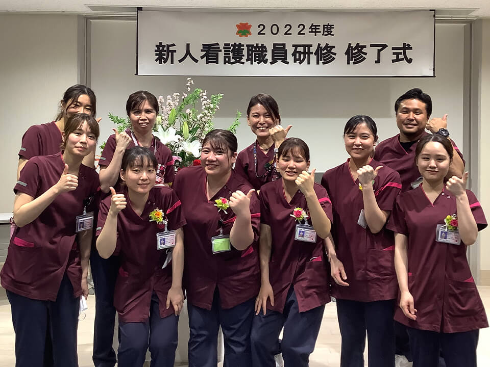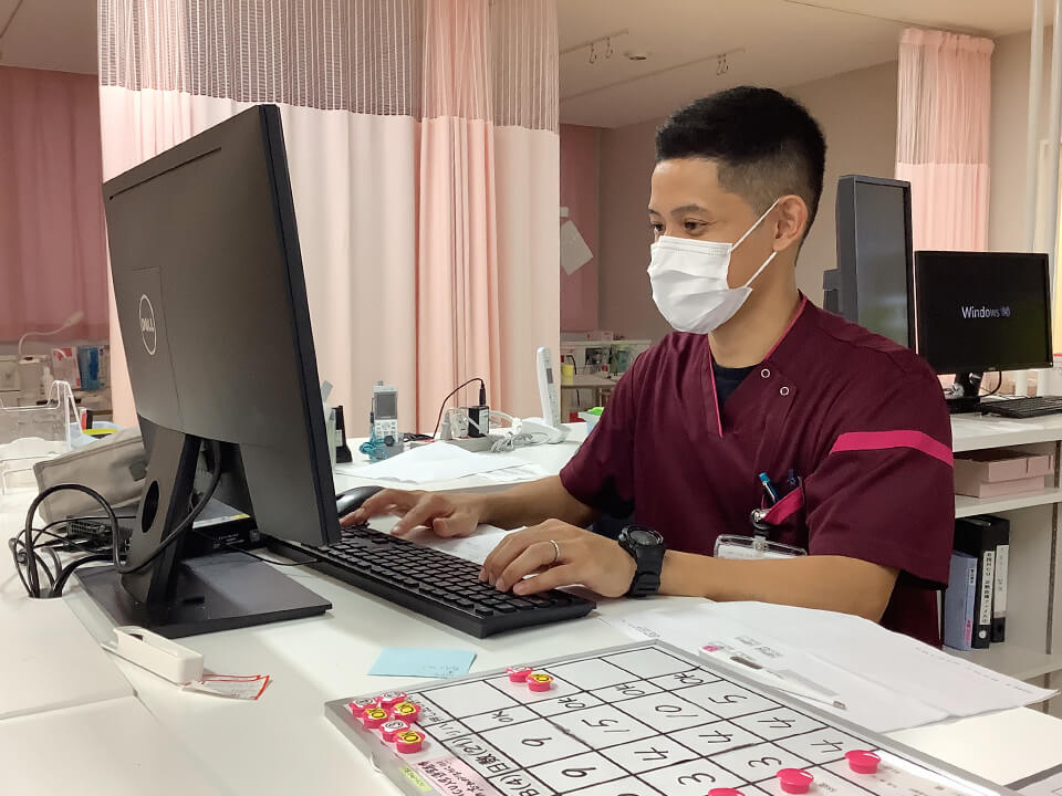 入職時は、業務を覚えることに必死で、患者さん一人ひとりに向き合うことができず、悩むことも多くありました。そんな時、先輩看護師にわからないことを相談したり、同期と日々学んだことや反省点を共有しながら働くことで、少しずつ患者さんに向き合えるようになってきたと感じています。皆さんと一緒に働けるのを楽しみにしています。