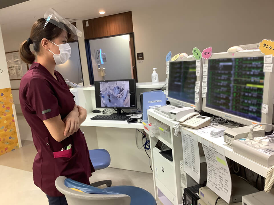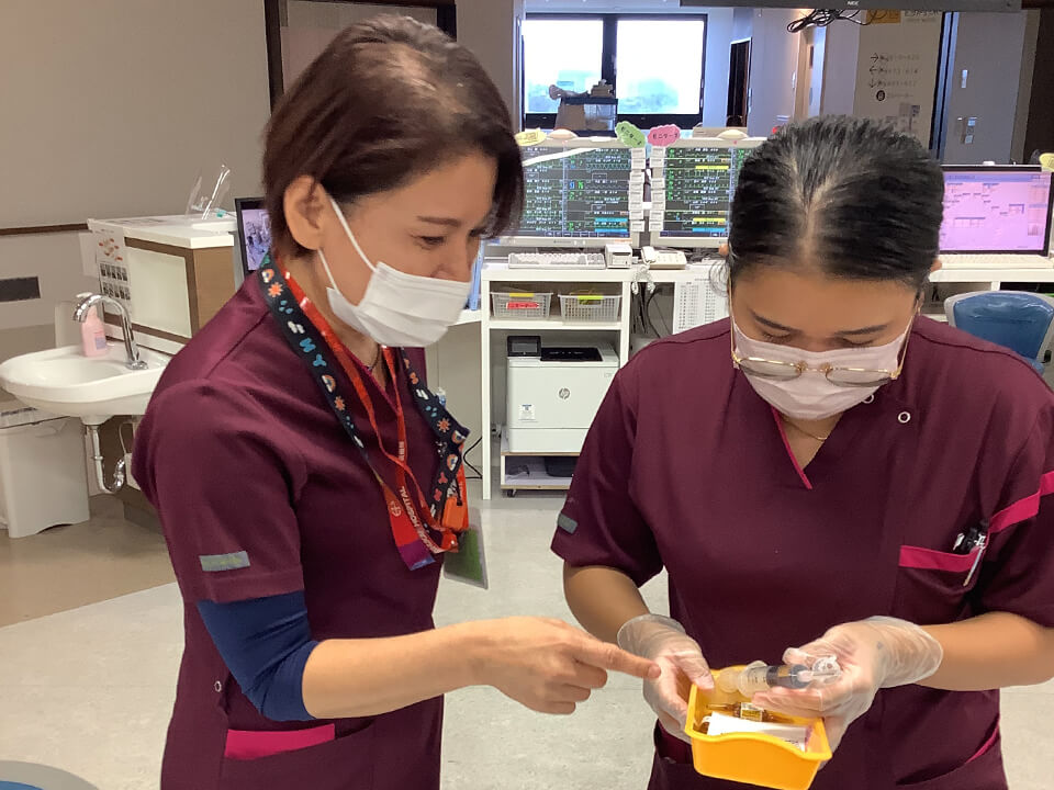 入職時は分からない心電図波形が多くありましたが、日々のペアで業務している先輩から教えてもらいました。また病棟の勉強会にも積極的に参加することで、心電図波形の知識も増えてきました。また周手術期の管理についても、先輩と一緒に確認しながら患者さんと接しています。