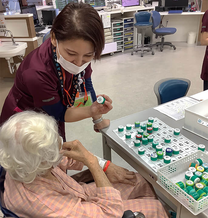 循環器病棟はとても忙しいのにも関わらず、スタッフは笑顔とチームワークで患者様の早期回復を目指しています。