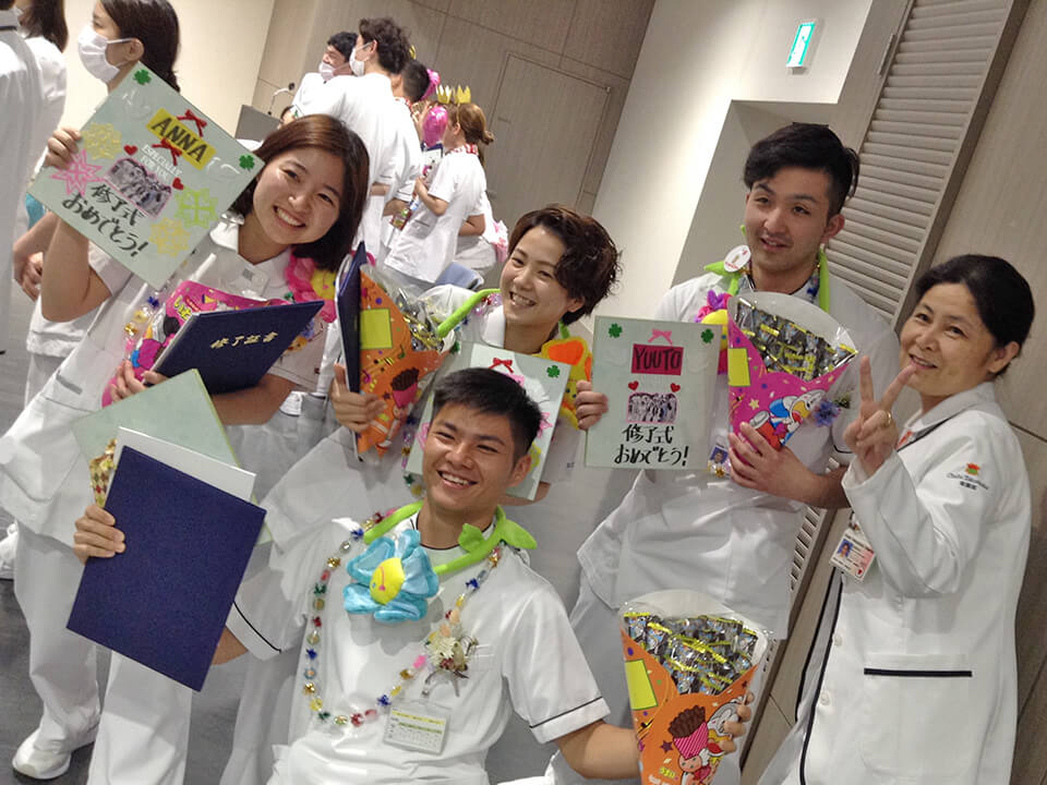 しかし、優しい先輩達から沢山のアドバイスを頂き、看護師として日々、成長する事が出来ました。一般内科・血液内科病棟では、輸血や化学療法といった特殊な治療を受けられる患者さんが多く、私達看護師は、豊富な知識と技術が必要となります、僕たちは同期と支え合いながら知識と技術を深めています。まだまだ未熟で学ばなければいけない事がたくさん有りますが、充実した毎日を過ごしています。皆さんと一緒に働けることを、楽しみにしています。