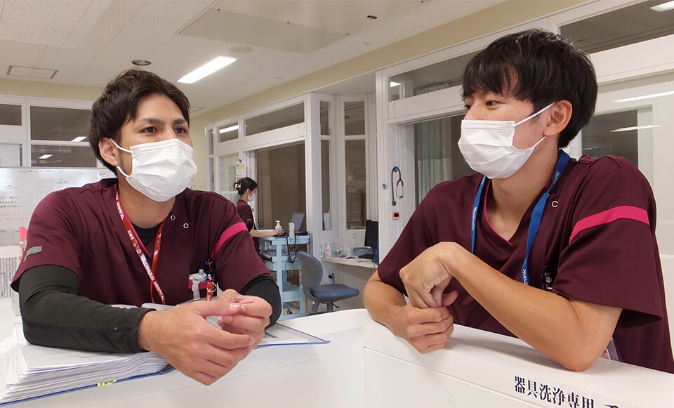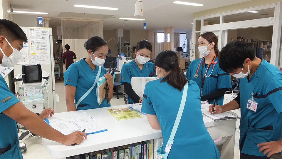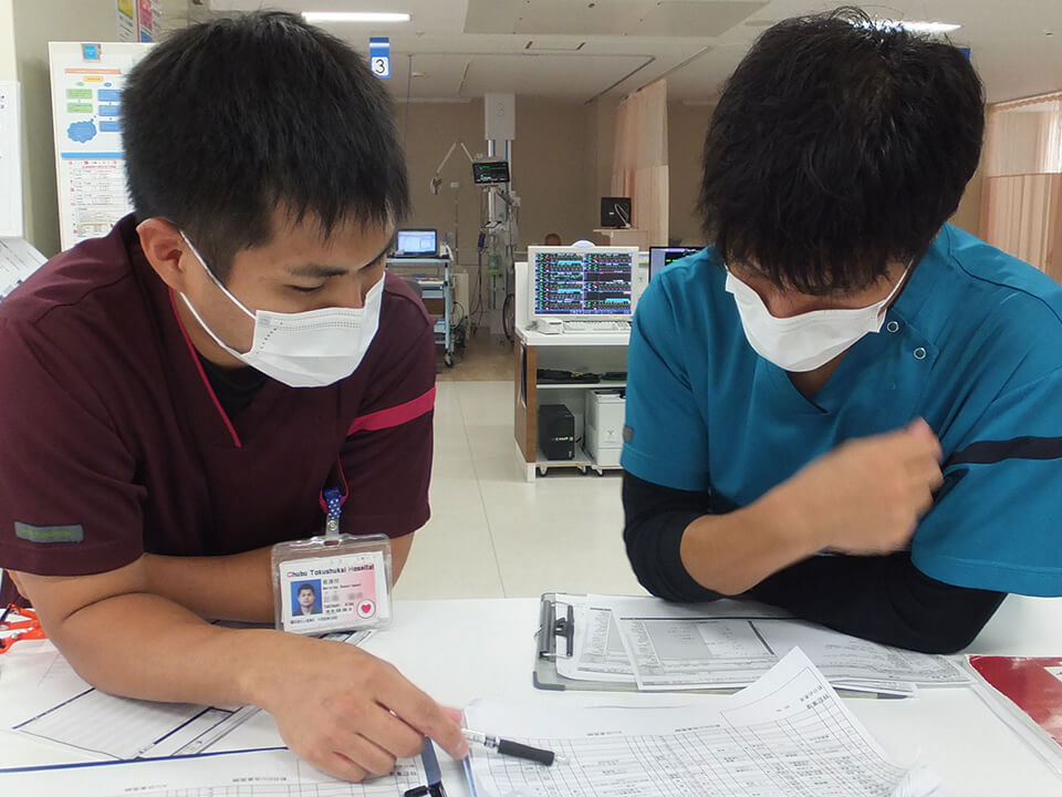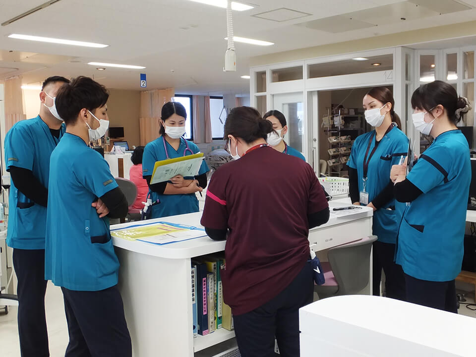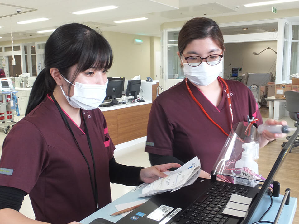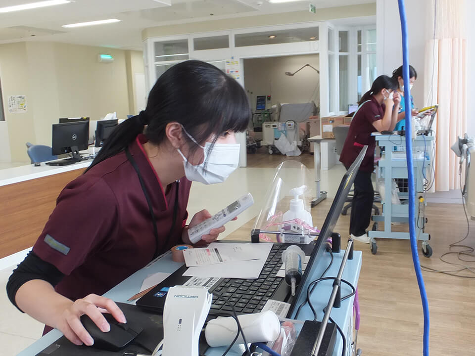 私は入職してICUに配属されました。ICUは重症な患者様が多く難しい疾患や薬剤、多くの医療機器などがあり、ひとつひとつ覚えるのが大変でした。しかし、先輩方が優しく声をかけてくれ、分からない事を丁寧に教えてくれたことで日々成長する事ができました。今ではリーダー業務や重症な患者様を受け持たせて頂いています。まだまだ学ぶ事は多くありますが、充実した毎日を過ごしています。