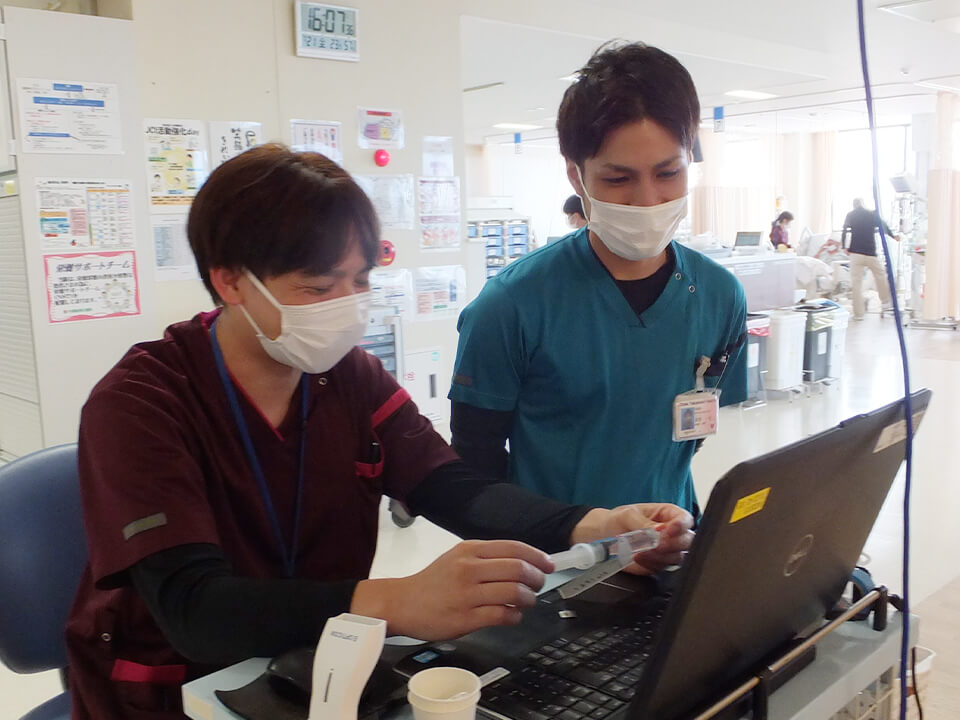 呼吸療法士の資格者を持つ看護師がいて良質な看護ができるよう力をいれています。また、集中ケア認定看護師を目指すスタッフもいて、向上心あふれる職場です。