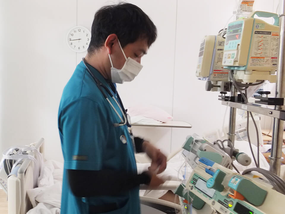 2019年1月にスーパーICU(特定集中治療室)の施設基準をクリアしました。患者様にとっては、早期に回復することが重要であると思っています。この回復に関わることが集中治療室の醍醐味であると感じています。専門的な経験をもつ多職種によるハイレベルな集中治療を提供し、重症患者様の早期回復に貢献できるよう日々努めてまいります。また、入院する多くの患者様は命を脅かす突然の発症のため、治療を最優先すると同時に、患者様・ご家族の精神的ケアは非常に重要です。不安を抱えている患者様やご家族の思いに寄り添い、誠実に対応することを大切にしています。