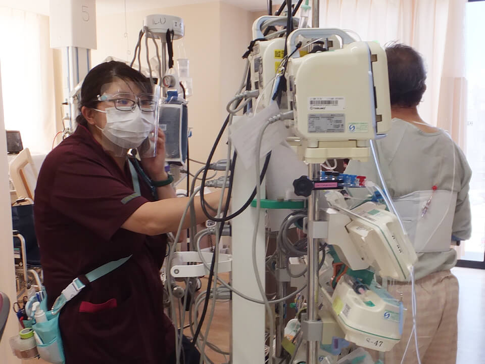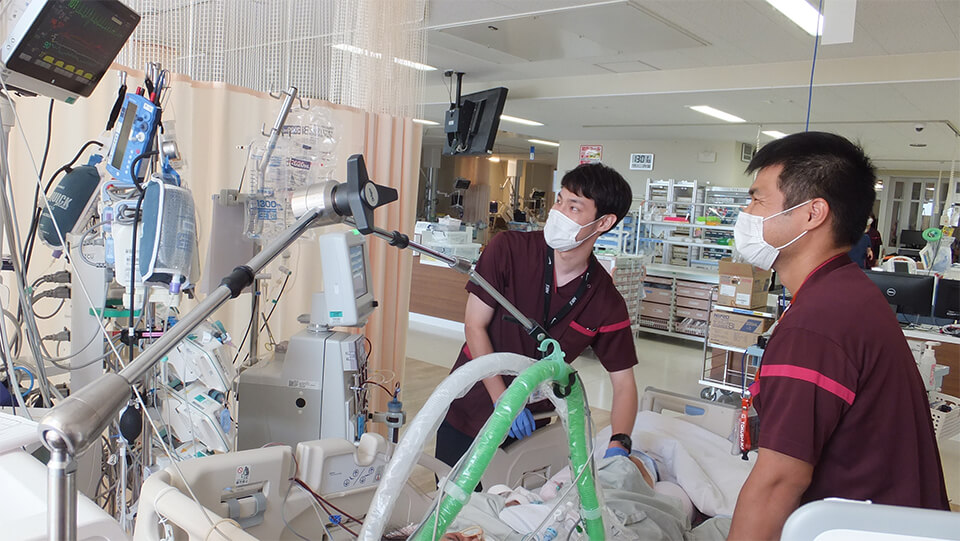 私は希望でICUへ入職しましたが、入職時は業務を覚えることだけでなく、重症な患者さんの病態生理を理解することに毎日必死でした。それでも部署の皆さんに支えられながら少しずつ仕事に慣れてきました。3年目になり、より重症の患者さんの受け持ちや、リーダー業務など多くの仕事を任せてもらえるようになってきました。