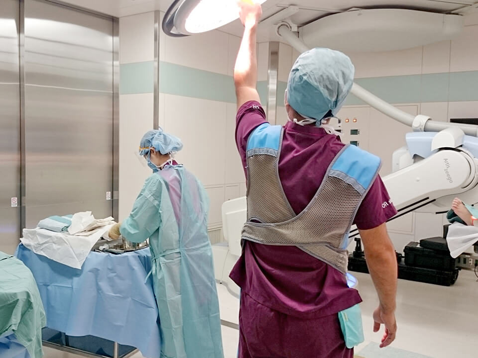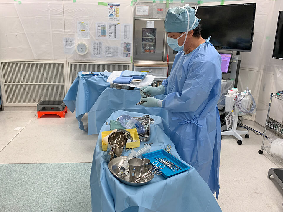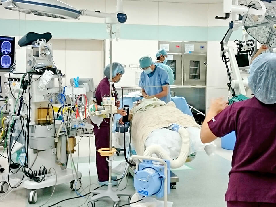 当手術室は一般外科や整形外科の手術はもちろん、心臓血管外科や脳神経外科、急性心筋梗塞などの緊急性の高い手術にも、年中無休・24時間オンコール体制で対応しています。