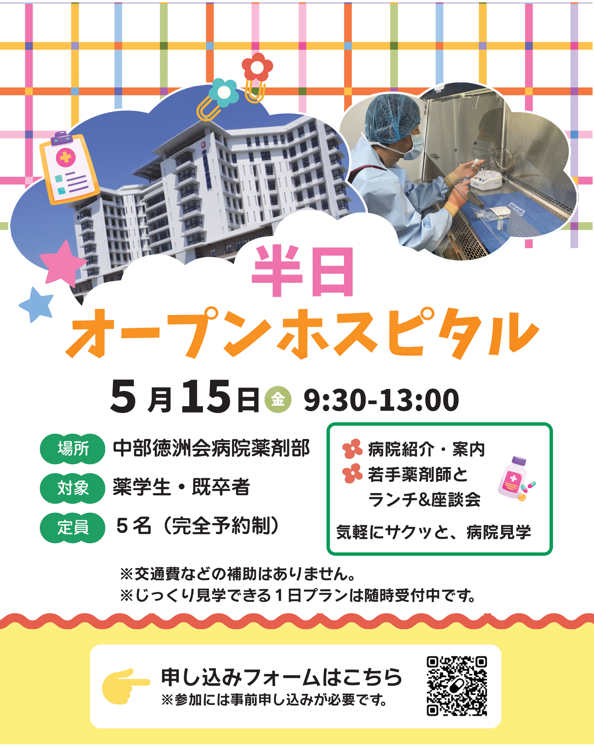 沖縄で就職を検討されている薬学生・薬剤師を対象に、見学の交通費・宿泊費の補助がありますので、担当者まで、申込フォームもしくはメールでご相談ください。